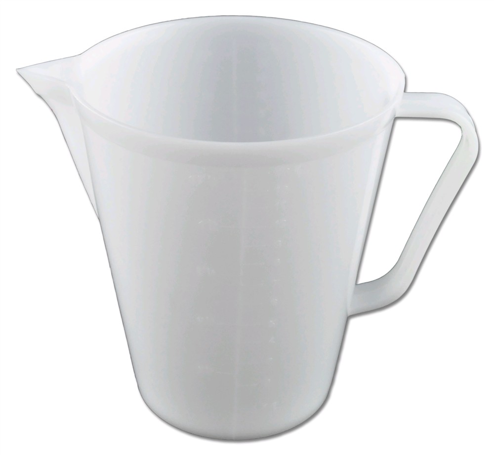 Plastic cone-shaped glass with 1 L handle for holding, transporting and holding various liquids. The glass is equipped with a fluid scaling meter.