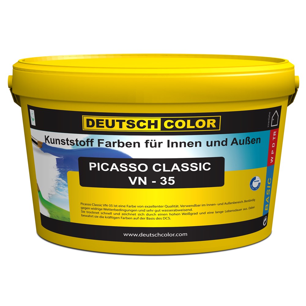 Picasso Classic VN 35 Ecological is an ecological plastic paint with excellent properties, which is used to paint interior environments of boldings. It characterized by very good coverageproperties, whiteness and long-lasing colors. It is a certified and meets all criteria of European Union of Eco-Label.