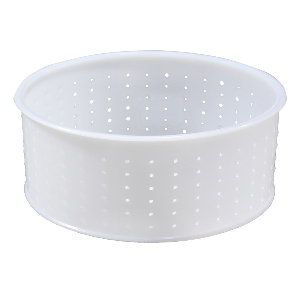 Plastic mold for holding cheese. The molds hold the cheese, compress it and give it the shape of plastic. Suitable for use in the home, restaurants, etc.