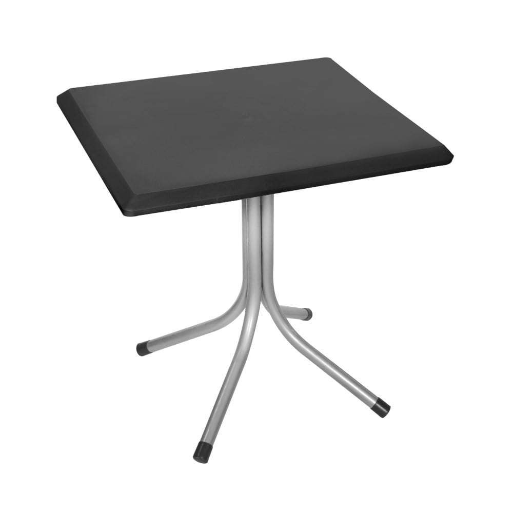 Plastic table: Size: 75x75x74cm Color: Black, Material: Metallic + Plastic