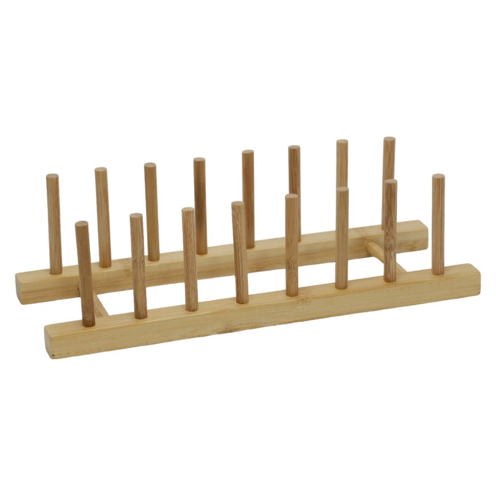 Bamboo plate holder and colander in natural brown, with dimensions 10.5x12x33.5 cm. This product offers an elegant and functional choice for organizing dishes in the kitchen.