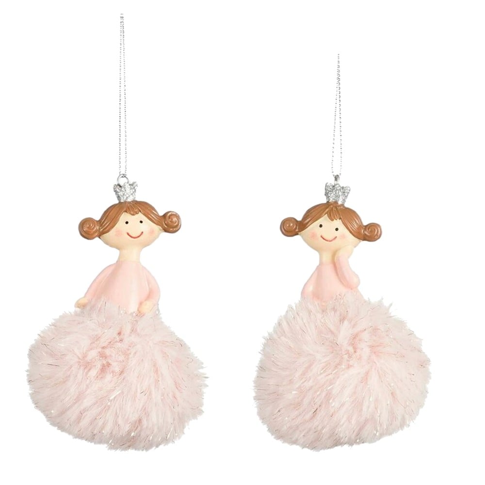 Princess Hanging Decoration, fur, pink / white, 5.5 cm