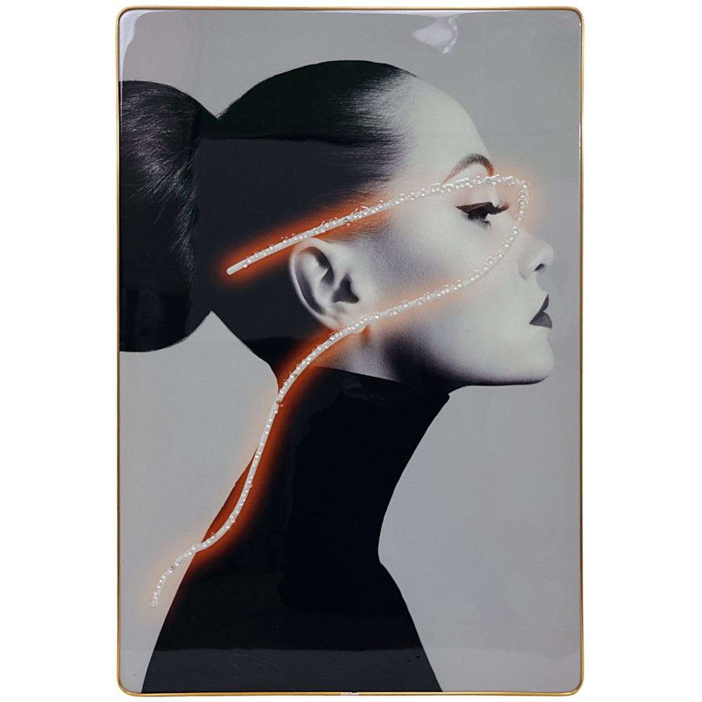 The image of a woman, dominant and elegant at the same time, with the color black which gives it a sophisticated look. This painting is the ideal choice for a bedroom characterized by a contemporary style. The frame of the painting is MdF in gold color and combines very well with the clean lines. A choice that represents sophistication and modernity. It can also look very nice in the premises of hotels or restaurants furnished simply and pleasantly.