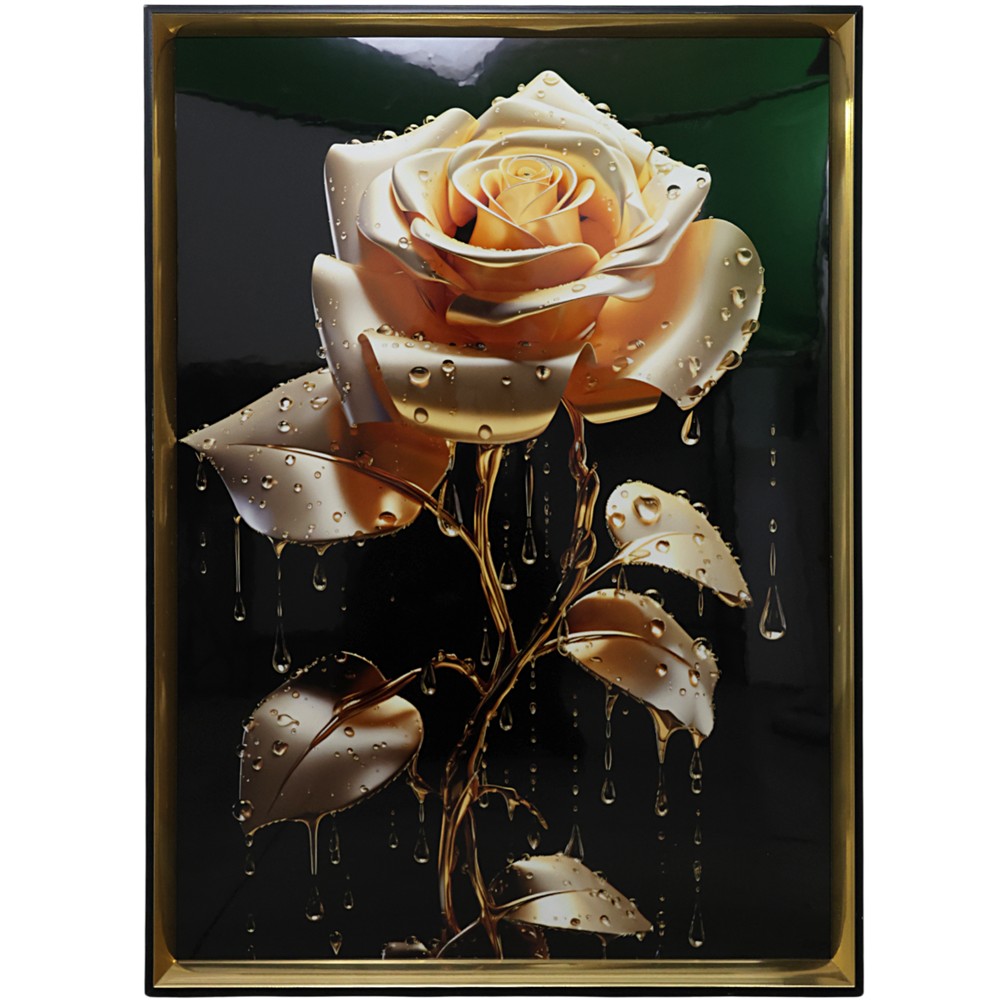 This printed painting with the Rose motif, placed in a gold MDF frame, measuring 50xH70 cm, is a work of art that brings elegance and liveliness to any space. The quality print captures the delicate essence and rich colors of the rose, creating a romantic and lively atmosphere. The MDF frame gives the painting a modern and dynamic look, which makes it suitable for various furnishing styles, from classic to contemporary. With its vertical dimensions and medium size, this painting is ideal for placing in bedrooms, living rooms or hallways, adding a touch of art and color to your environment.