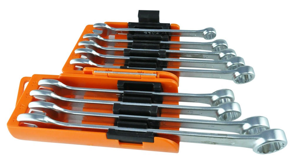 Combination Wrenchs, open and offset ring ends,(8,10,11,12,13,14,15,17,19mm) widely used by professionals in the field of mechanics as professional car service in industry and beyond. With a Cro-Vanadium material make this tool more resistant.