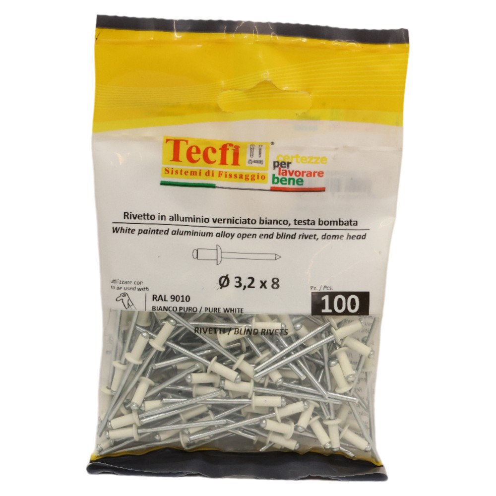 pure white dome blind rivets, al/zp steel RAL 9010, Ø 3,2x8mm, Bag 100