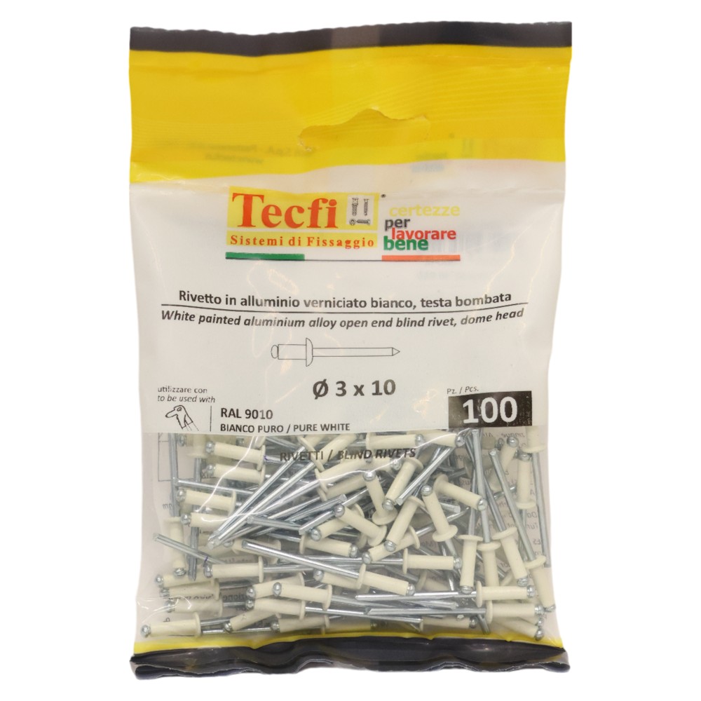 pure white dome blind rivets, al/zp steel RAL 9010, Ø 3x10mm, Bag 100