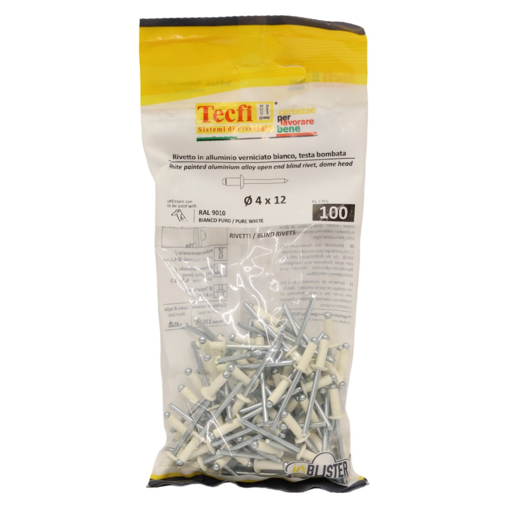 pure white dome blind rivets, al/zp steel RAL 9010, Ø 4x12mm, Bag 100
