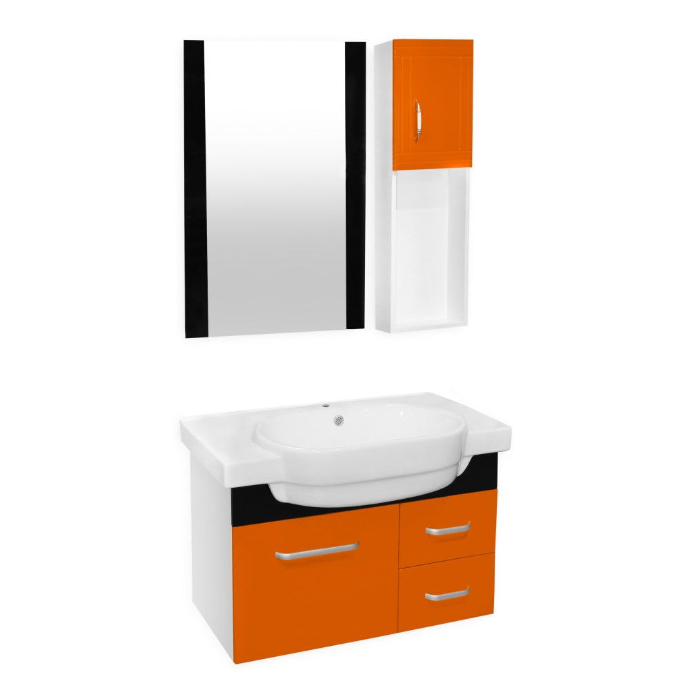 The “Sea Wave” - complete set of bathroom furniture presents an elegant design that will rejuvenate your bathroom. The collection’s material is PVC which offers high-humidity resistance, easy to clean and durable surfaces for long-lasting beauty.Black,white and orange furniture fit very well in environments with modern tiles in monochrome colors like cream, white, etc.. This is a collection that includes: basin, basin- cabinet, mirror & side cabinet. All of the components are pre-assembled and ready-to-install in a quick and easy way. With “Sea Wave”set you can remodel your bathroom anytime by removing the wall storage unit anywhere your space needs even more storage. The complete bathroom makeover with “Sea Wave”brings innovation and fun in your home.