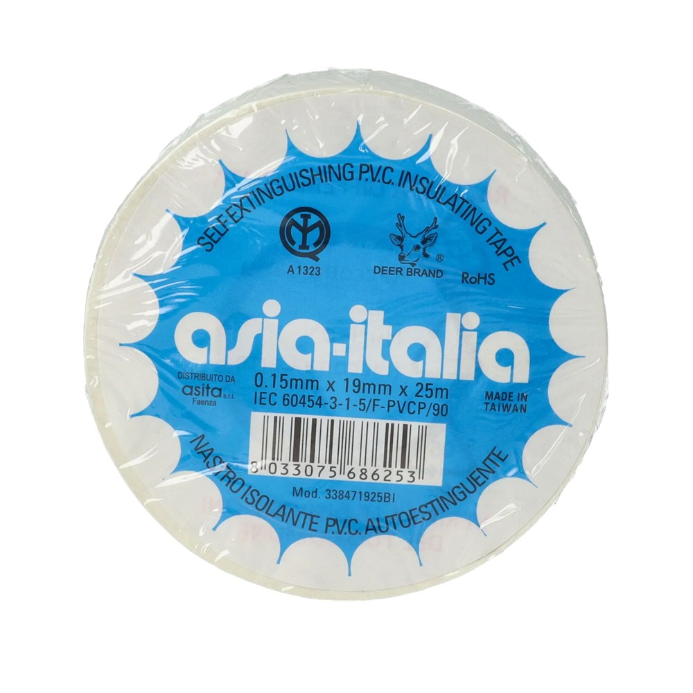 Insulating tape, dimensions 19 mm x 25 m x 0.15 mm, white. Flexible and voltage-resistant material, suitable for insulating cables and electrical connections. Provides safe protection and durability in long-term use.