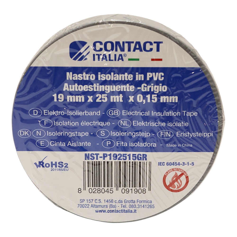 Insulating tape, dimensions 19 mm x 25 m x 0.15 mm, gray color. Flexible and voltage-resistant material, suitable for insulating cables and electrical connections. Provides durable protection and safe use.