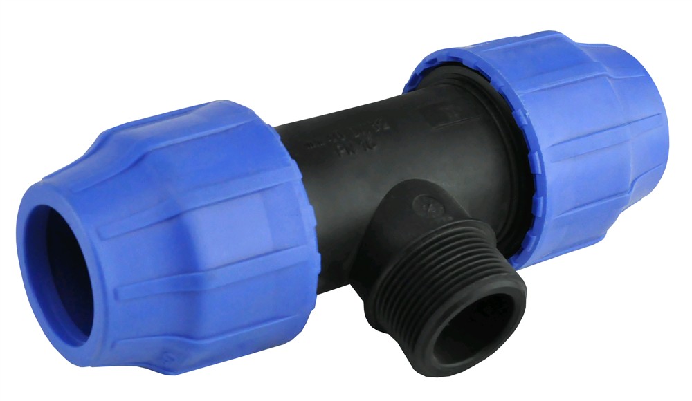 Tee with faucet of PP 63x2"x63 mm male with angle 90°. Used to installations angular water supply infrastructure lines, in irrigation and agricul, etc. This tee enables network branching 90° angle. This tee connect pipe Ø 63 with other fittings by fillet, for joining the fillet recommend tu use teflon whiles pipe connect whith tee in mechanically with faucet. Manufactured with European standards, resistant to corrosive materials designed to withstand pressure up to 16 Bar.
