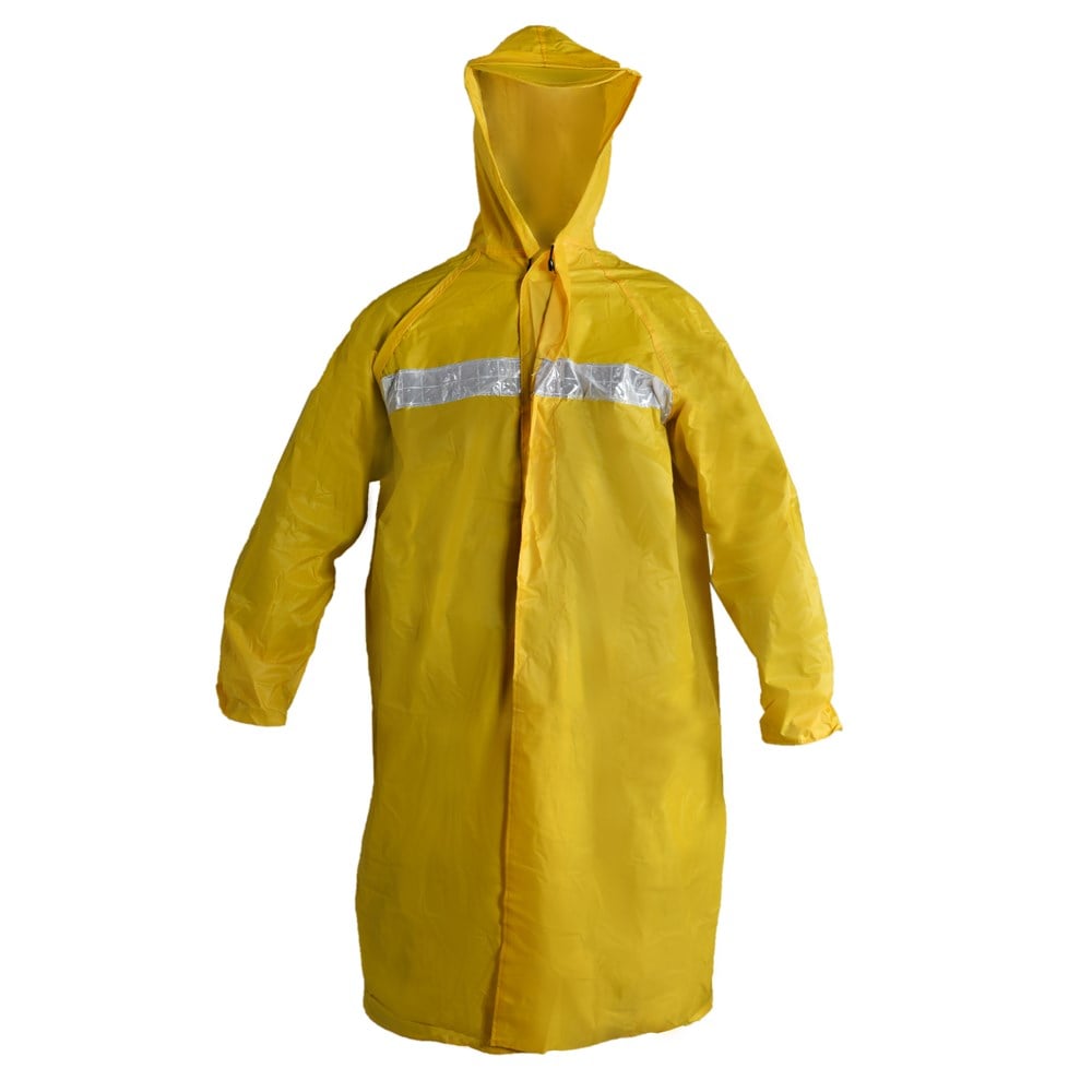 Rain coat over with yellow color and reflective tape Material: PVC Size L 115x78cm