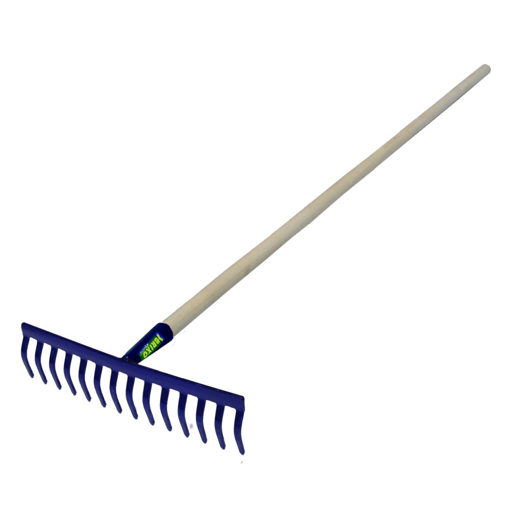This metal comb with wood handle, 14 teeth and 35 cm width. widely used in the premises of the garden and your yard to clean it from grasses and fallen leaves. Its width in his reach to clean a greater space.