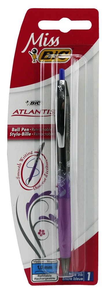You're reviewing:Retractable ballpoint pen, Atlantis, Miss Bic, plastic and rubber, 19.5x5.5 cm, purple and blue, 1 piece
