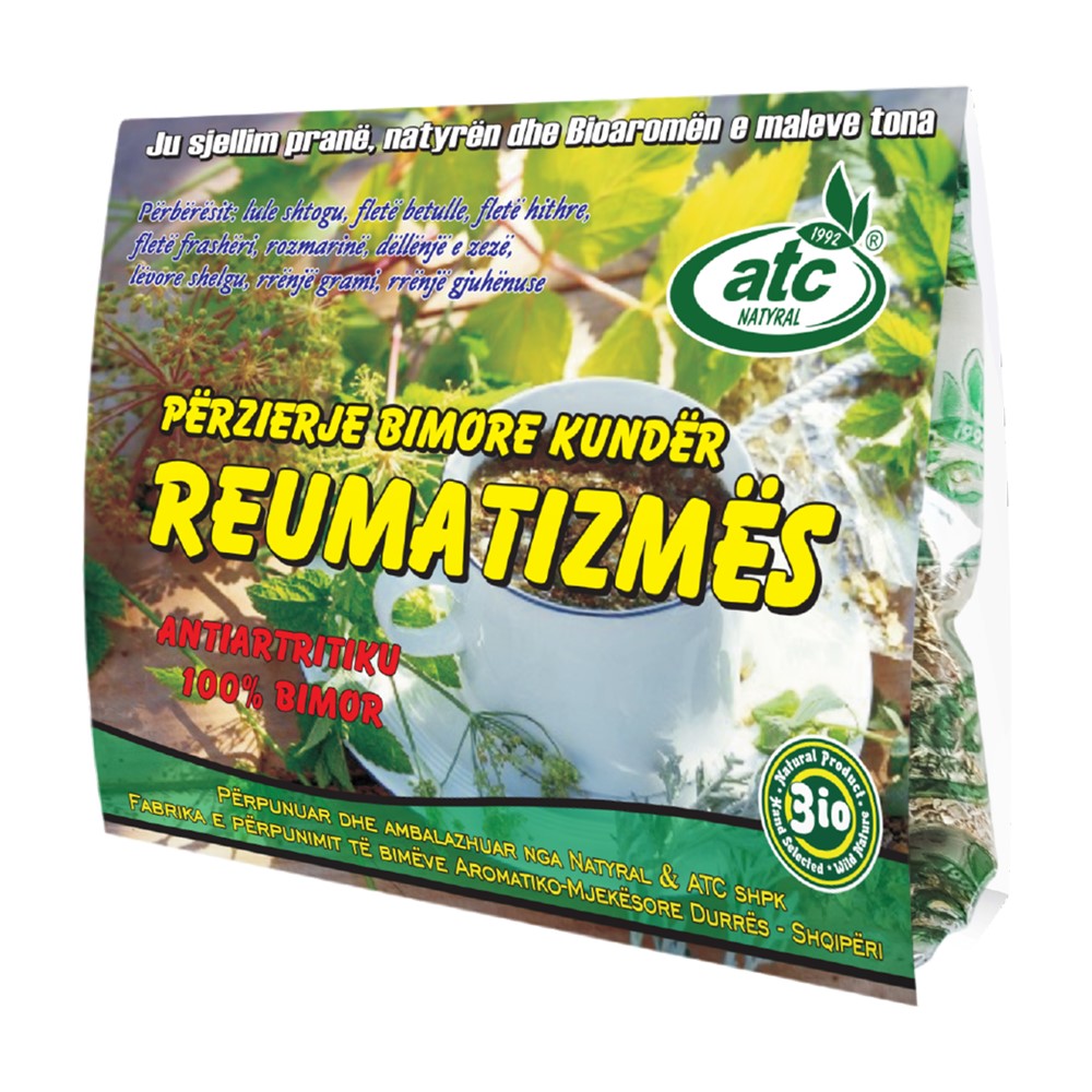 Tea for the treatment of rheumatism, with a mixture of medicinal herbs, which help relieve pain caused by rheumatism. Juniper has a diuretic effect and helps cleanse chlorides and nitrogen, removing them from the body in the form of urea and relieving rheumatoid arthritis. Nettle promotes blood circulation to the skin, relieves pain caused by rheumatism and enriches the body with vitamins such as A1, B2, C and K. Rosemary helps to treat rheumatoid arthritis and helps blood circulation. The restharrow root contains saponins, flavonoid heterosides, essences and other ingredients, which have diuretic properties, which stimulate urination and reduce urinary tract irritation and rheumatism. Birch leaves contain saponin, resin, vitamin C, tannins and flavonoids that promote diuretic action and help relieve rheumatism and joint pain. Willow bark thanks to the salicin it contains, helps to obtain salicylic acid and is recommended against chronic rheumatism. It is recommended to store in dry places away from light and moisture.