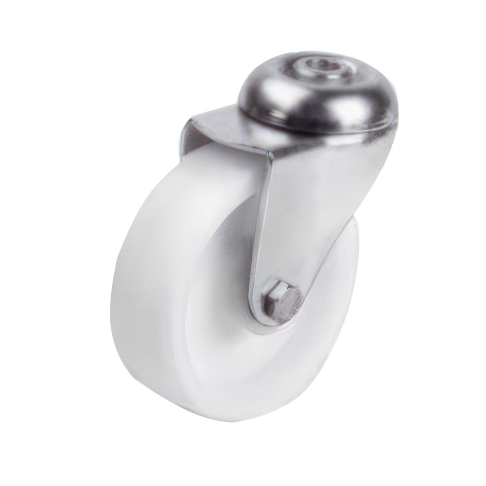 This caster helps move heavy loads on smooth, hard surfaces and finished concrete floors where quiet movement and floor protection are vital. It attaches easily with a plate and 4 screws.