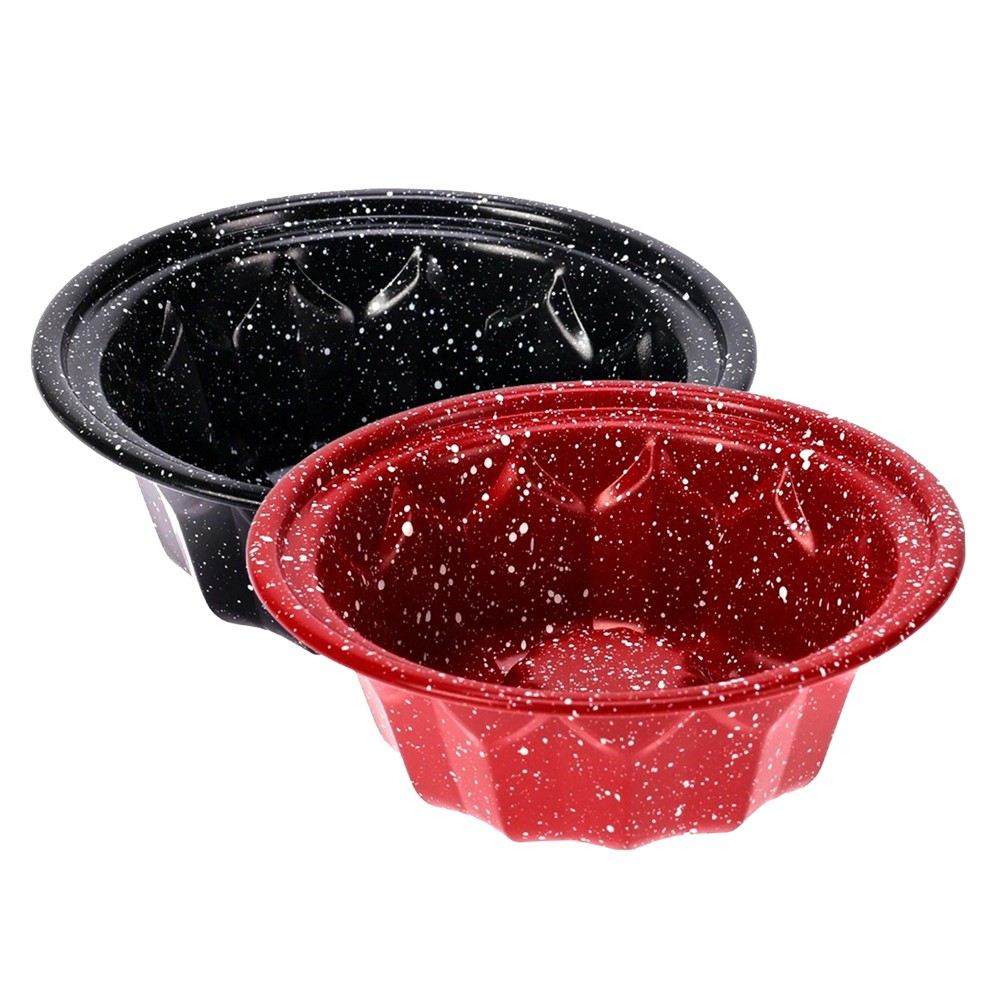 This round cake pan (PK 2) is made from durable metal, ensuring even heat distribution for perfectly baked results every time. Available in sleek black or vibrant red, it has a 12 cm diameter, making it ideal for mini cakes, pastries, or specialty recipes. Its sturdy and practical design makes this pan an essential tool in any kitchen.