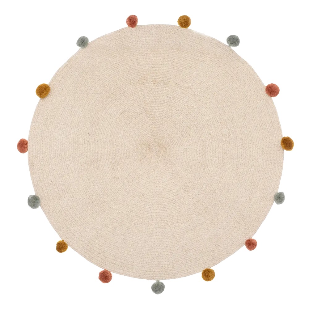Round carpet with pompom for children, cotton, 90x90 cm, natural, 1 piece