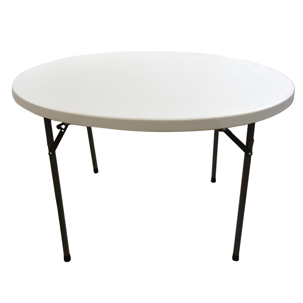 The round folding table is a product designed to provide a convenient and comfortable space for eating, working, or organizing various meetings. It is constructed with a combination of PVC and metal materials, giving it a modern look and a durable quality.
