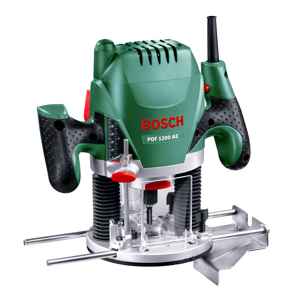 The router POF 1200 AE is a powerful and precise tool for creative woodworking. Material-specific preselection of the speed due to Bosch Electronic with setting wheel and accelerator switch.It has easy and fast router bit changes due to integrated spindle lock.It has a powerful 1200 watt motor for demanding tasks in all types of wood.It has a dust extraction port – for dust-free working.