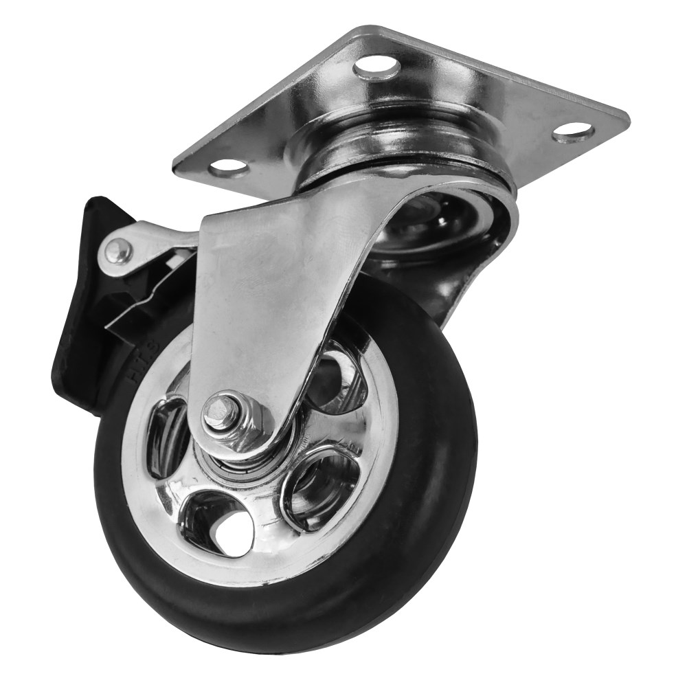 This caster helps move heavy loads on smooth, hard surfaces and finished concrete floors where quiet movement and floor protection are vital. The caster swivels 360-degrees for ease of use and has a 50 kg. load rating. It attaches easily with a plate and 4 screws.