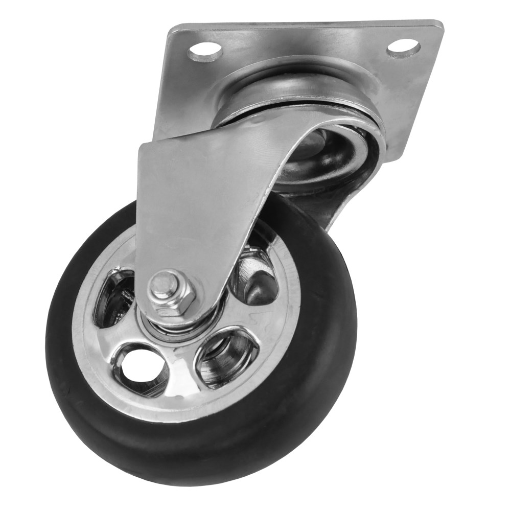 This caster helps move heavy loads on smooth, hard surfaces and finished concrete floors where quiet movement and floor protection are vital. The caster swivels 360-degrees for ease of use and has a 50 kg. load rating. It attaches easily with a plate and 4 screws.