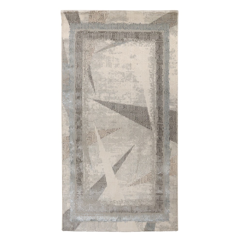Rug Elit, shinny polyester, cream/light blue, 80x150 cm