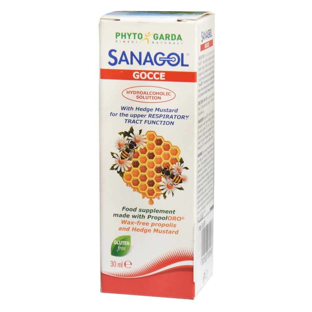 Sanagol food supplement with Propolis. Emollient and helps to normalize the mucous membrane of the pharynx and regulates the voice. How to use: 10 drops twice a day, dissolved in water. Shake well before use.