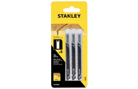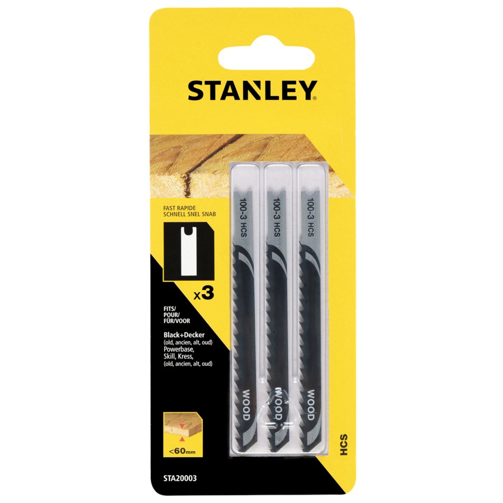 Saw blade, Stanley, 68x4 mm. 3 HCS blades for sharp, fast and straight cuts. L. 75 mm. D 4 mm. Up to 60 mm thickness in wood.