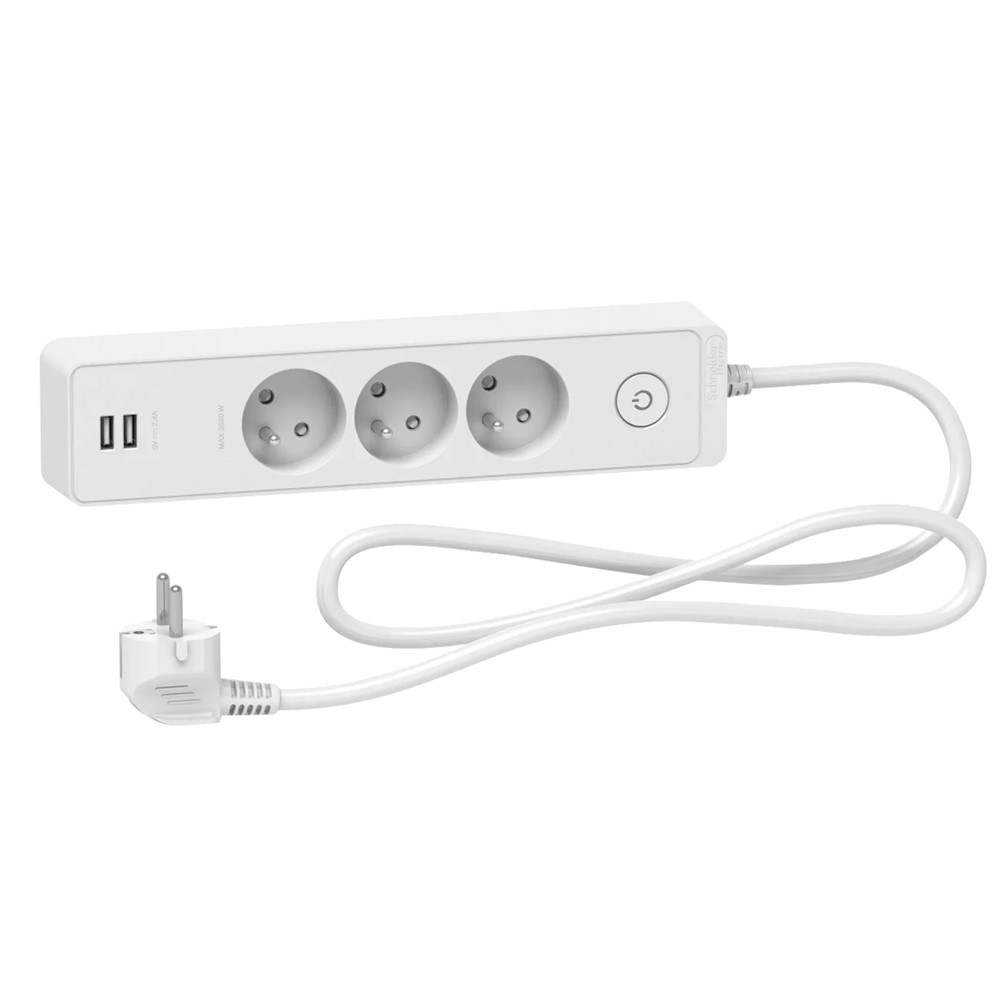 Schuko 3G TS w SW & 2 USB 1.5M white
