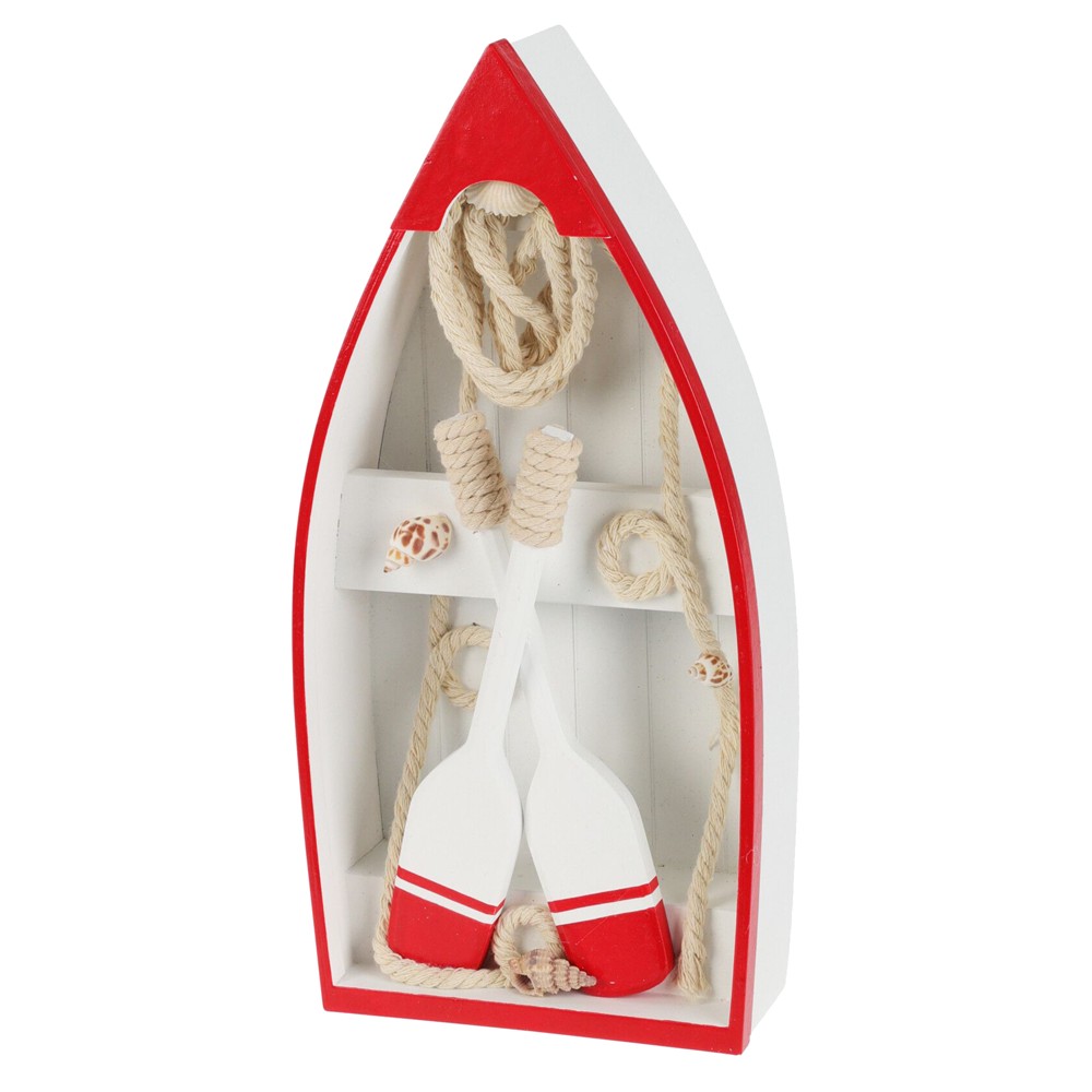 Sea decoration, Boat, wooden, red/white, 16x6.5xH33 cm