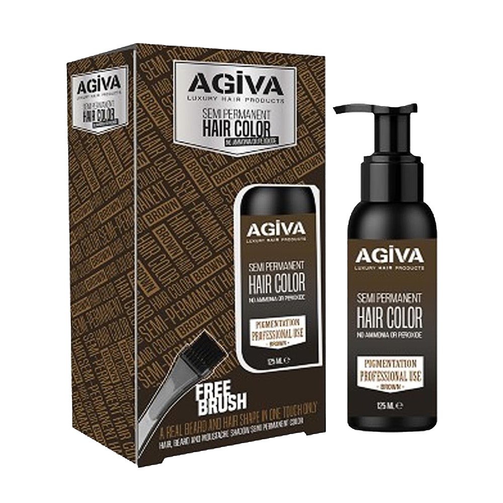 Semi-permanent beard and hair dye and a brush for applying the dye, Agiva, plastic, 125 ml, brown, 2 pieces