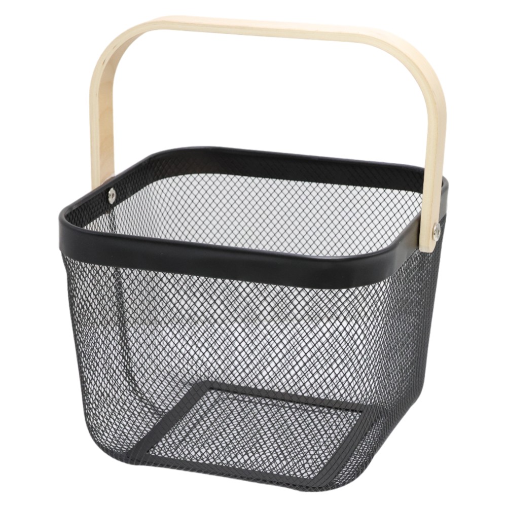 Metal serving basket in black, with dimensions 19x24 cm. This basket brings a special element of organization for your desk, enabling you to serve chips, or different cocktails.
