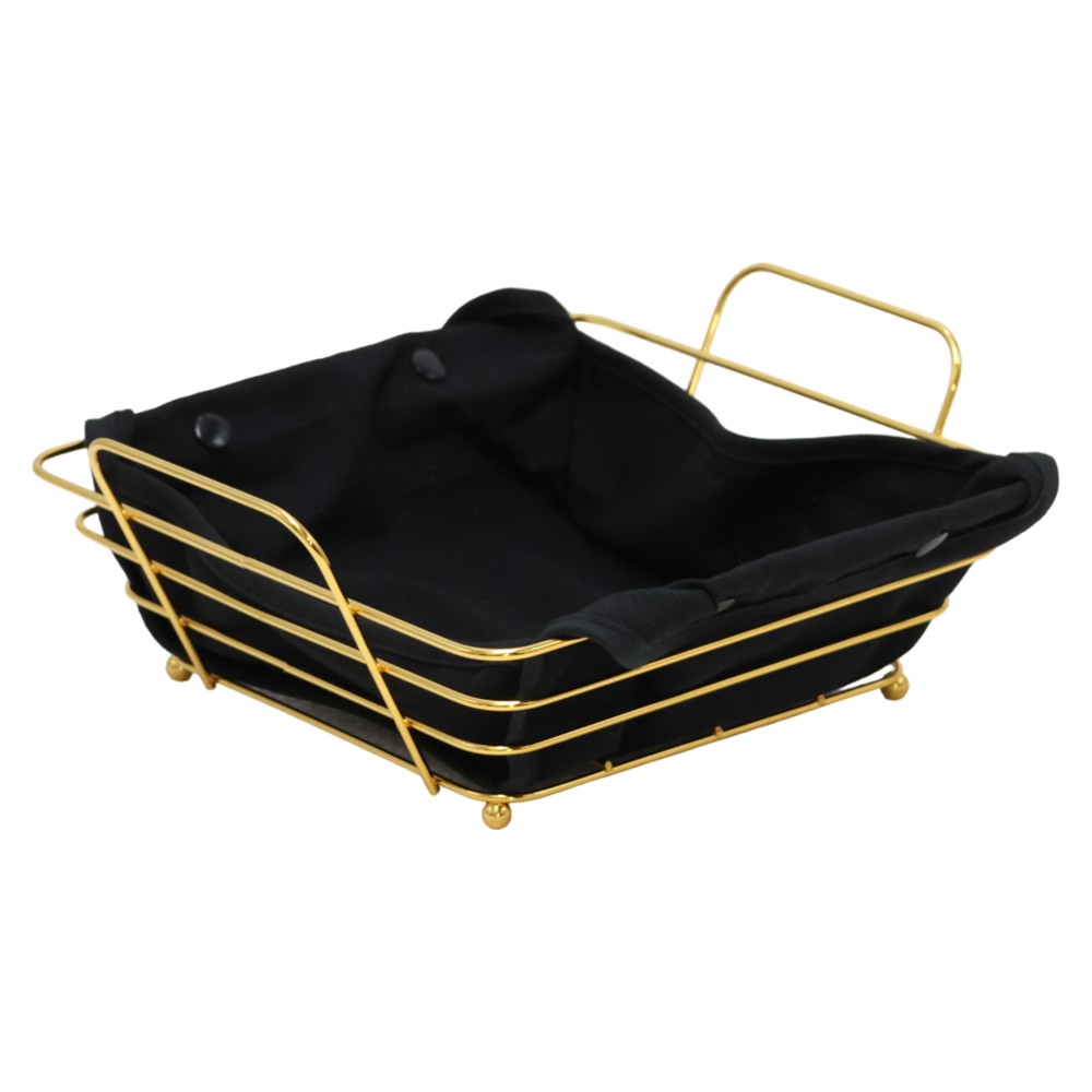 Metal serving basket in black, with dimensions 24x26xH10 cm. This product offers an elegant choice for organizing and presenting your favorite products on the table. Suitable for bread, panini and other doughs.