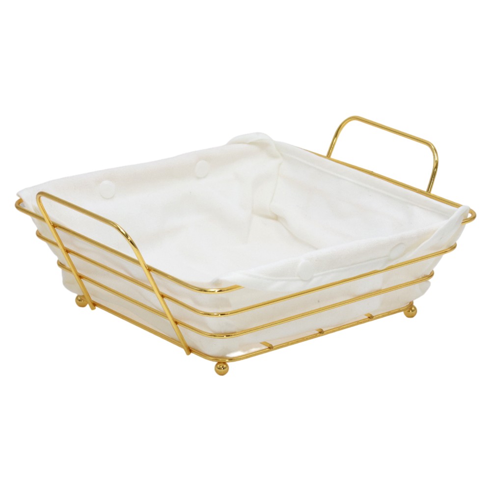 Metal serving basket in gold color, with dimensions 24x26xH10 cm. This product offers an elegant choice for organizing and presenting your favorite products on the table. Suitable for bread, panini and other doughs.
