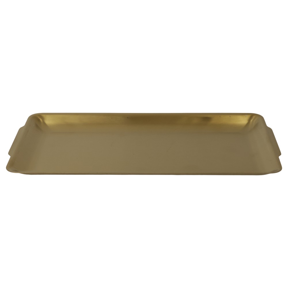 The metallic serving tray in gold color is an elegant and functional accessory for any table setting. Measuring 16x32 cm, it is ideal for serving desserts, drinks, fruits, or various dishes with style and refinement. The metal material ensures durability and long-lasting use, while the gold finish gives it a luxurious and attractive look. Easy to clean and suitable for any occasion — from everyday use to festive events — this serving tray is the perfect combination of functionality and elegance.