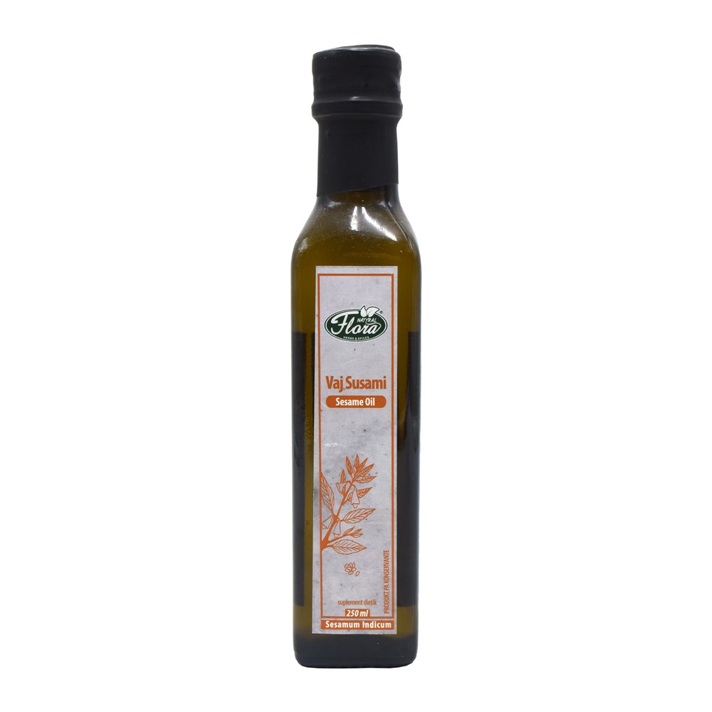 Sesame seed essential oil, with a content enriched with vitamin E, oleic acid, linoleic acid, niacin, thiamine, riboflavin, minerals and amino acids. Vitamin E fights the appearance of wrinkles, sun marks and other signs of aging, as well as helps to cleanse the liver. Oleic and linoleic acid in sesame seeds, are abundant substances with essential fatty acids, which have oxidizing properties, fight free radicals, lower blood pressure and high cholesterol, as well as delay or reduce the effects caused on the brain by the Alzheimer's disease. Thanks to the significant presence of amino acids such as methionine and tryptophan, sesame oil is crucial for a variety of organic activities, both in the growth phase and in adulthood. Niacin, thiamine and riboflavin, as well as essential minerals such as calcium, selenium, magnesium, phosphorus and iron, act as a supporter of the immune system and protect the musculoskeletal system, while helping to prevent osteoporosis.