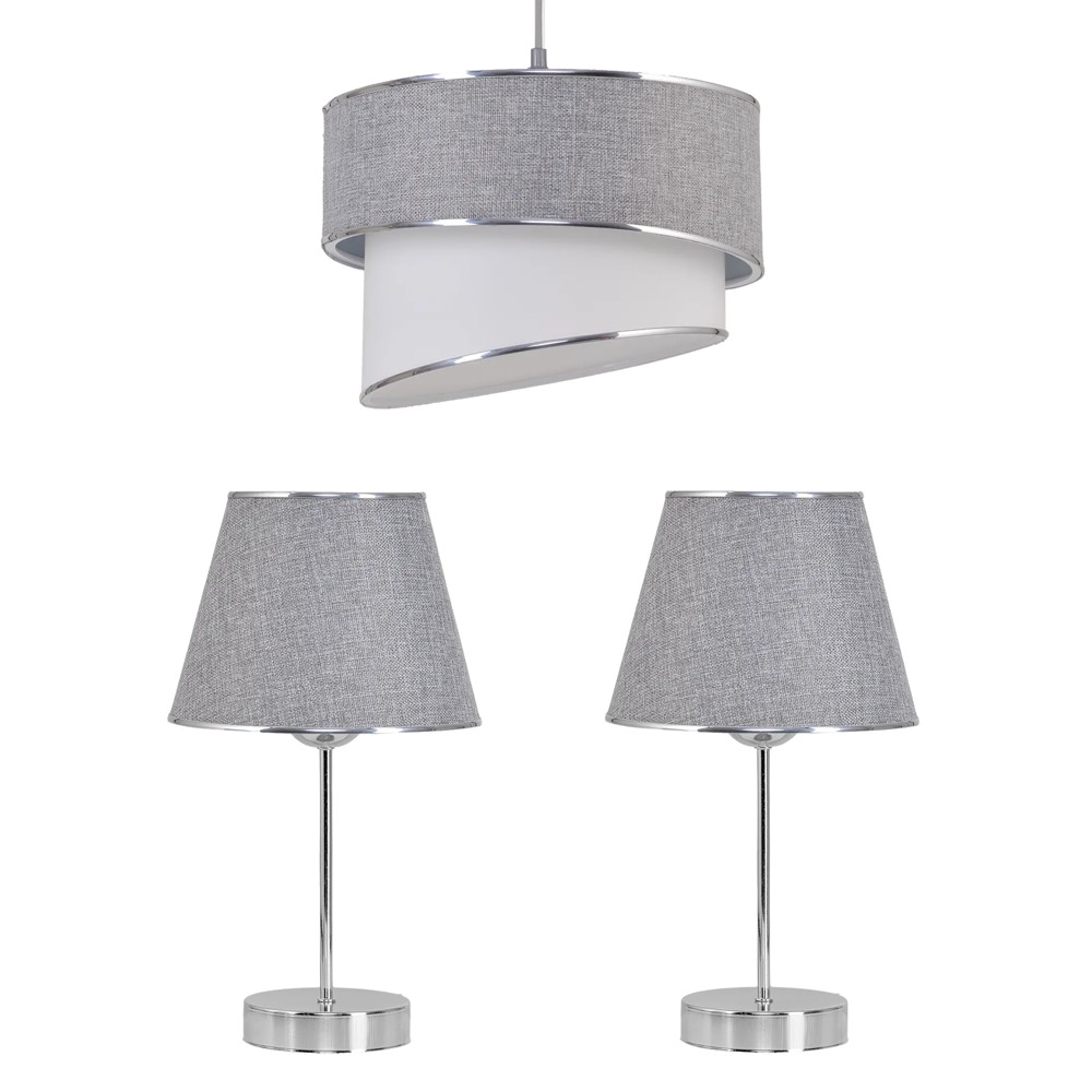Set, 1 pendanta light + 2 table light, E27, 1x60 W, gray/white textile, H35 cm