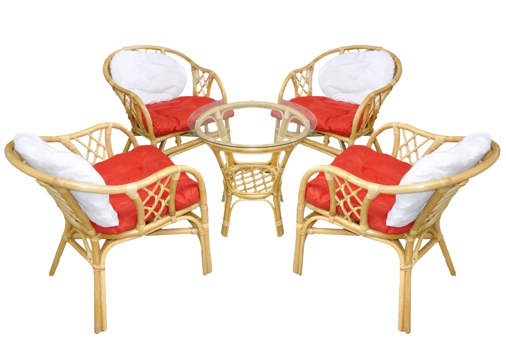 You're reviewing:Set Mango, Table+ 4 Chairs+Cushion+Glass, Materiali:Natural Bamboo