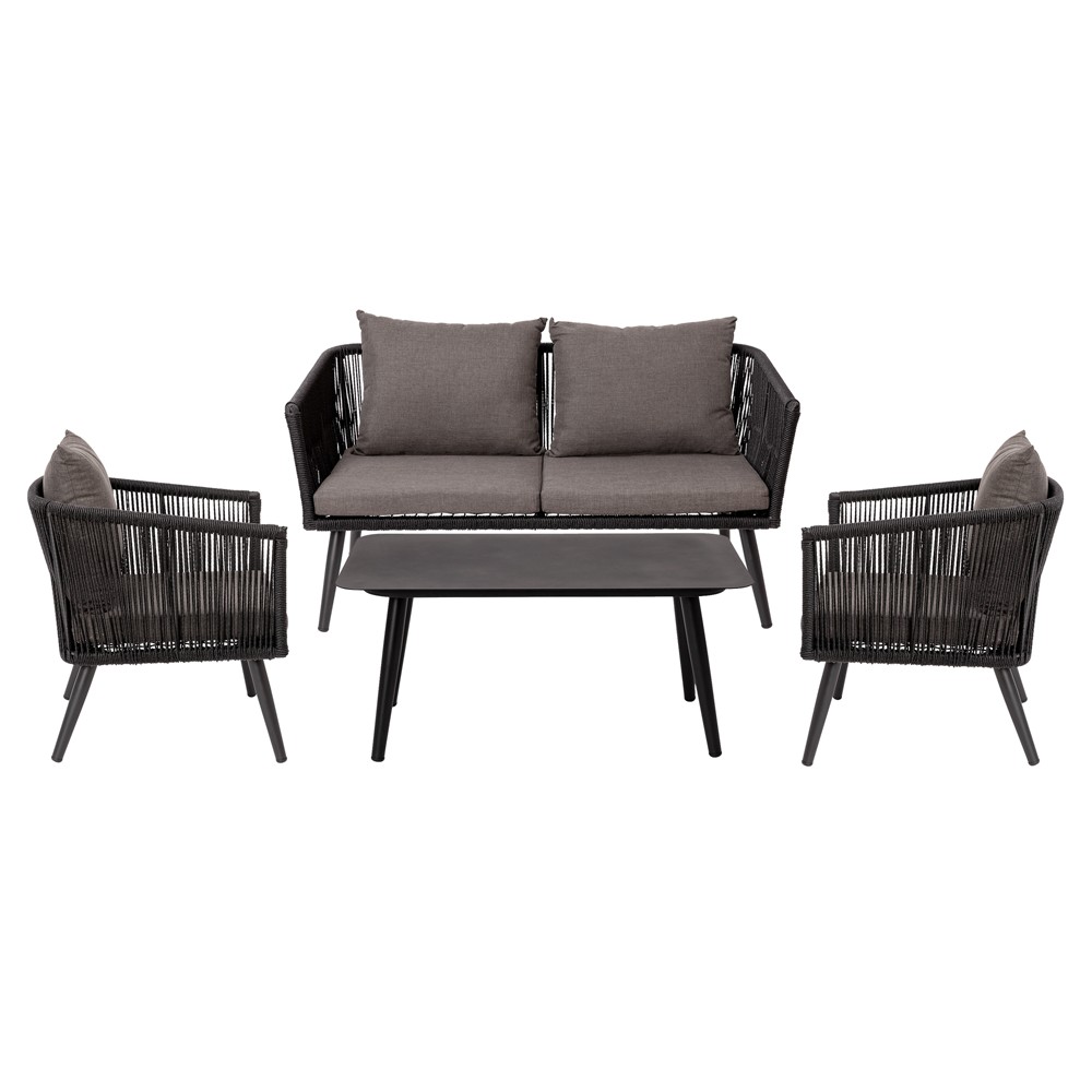 You're reviewing:Set of 2 single armchairs + 1 double armchair + 1 Dili table, aluminum / woven PE, black, 65x70xH69/136x70xH69/90x50xH46.5 cm