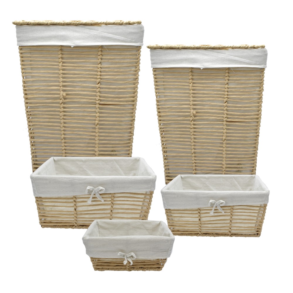 Set of 5 baskets, Aria, polyester, brown/white, 44x30.5Xh56, 38x26xH48, 3xX24, 32x24, 28x20