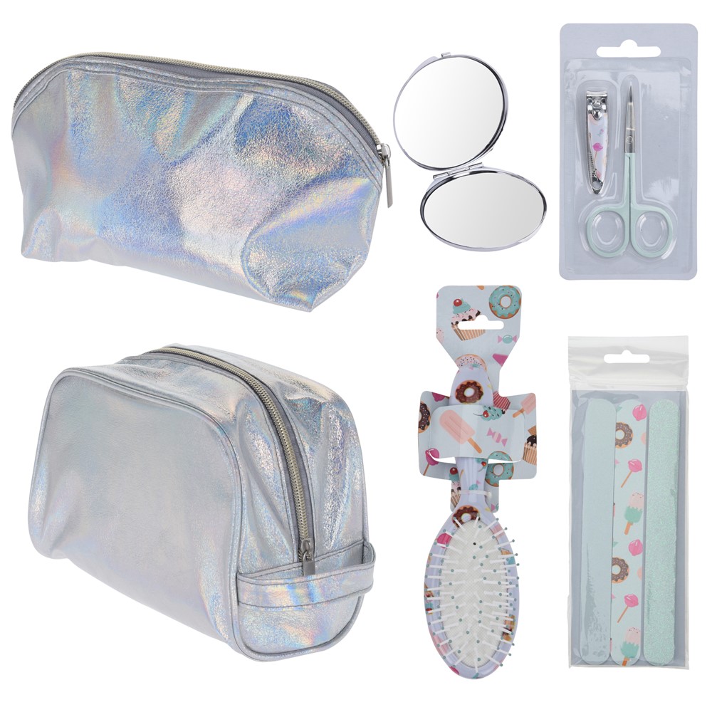 Cosmetic bag set 1.Hair comb, Koopman, polypropylene 2.Nail file set, Koopm 3.Set for nail care 4.Makeup mirror, Koopman, polyester 5.Cosmetic bag, Eleganza, polyester 6. Cosmetic bag, Eleganza, polyester