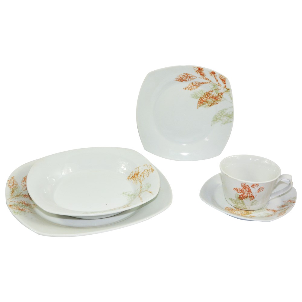The set of dishes with the pleasant design with porcelain material are more economical and more suitable for family daily use. The set contains 30 pieces, 6 deep dish plates, 6 flat plates, 6 dessert plate, 6 coffee cups together with their plates. Are hygienic and easily cleaned.