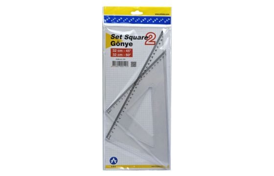 Ruler set, made of plastic material, which contains 2 triangular rulers, in transparent color. They are used for sketching and drawing, and can be used to teach young children about geometric shapes. This product is suitable for use by children over 3 years old and adults, and is practical thanks to its small size.