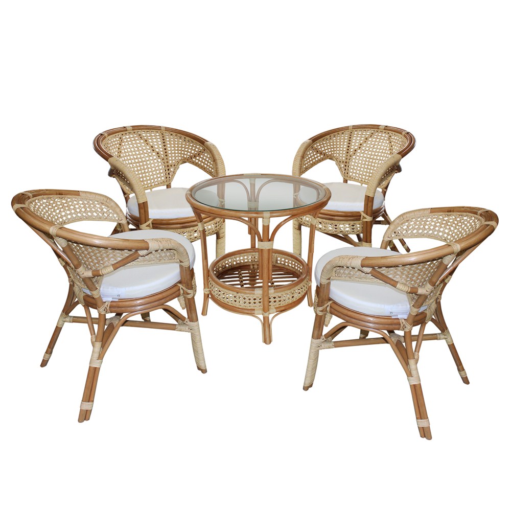 Natural Bamboo set is consisting of tables with glass top and four chairs is an ideal choice for furnishing your environment, open bars , verandas , terraces , balconies , etc. . Elegant form of this set of circles rhythmic motives used in the composition of the support element and chairs on the upper contour set at the table add charm to this set making this classic environment appropriate for your garden . Natural color of this set fits easily with nuances of colors especially open the wall color and accessories to your garden and quite well with the green environment .