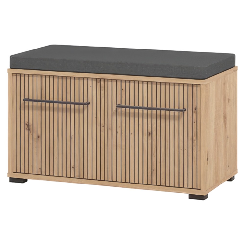 The "Landes" shoe rack is an excellent choice to organize and store shoes in a convenient and stylish way. This shelf comes with an attached bench, making it a practical and functional choice for your space. Its solid melamine construction ensures it is durable enough to hold your shoes safely. The "Landes" shoe rack is the right choice to store shoes in an organized and refined way, while also serving as a decorative element for your space.