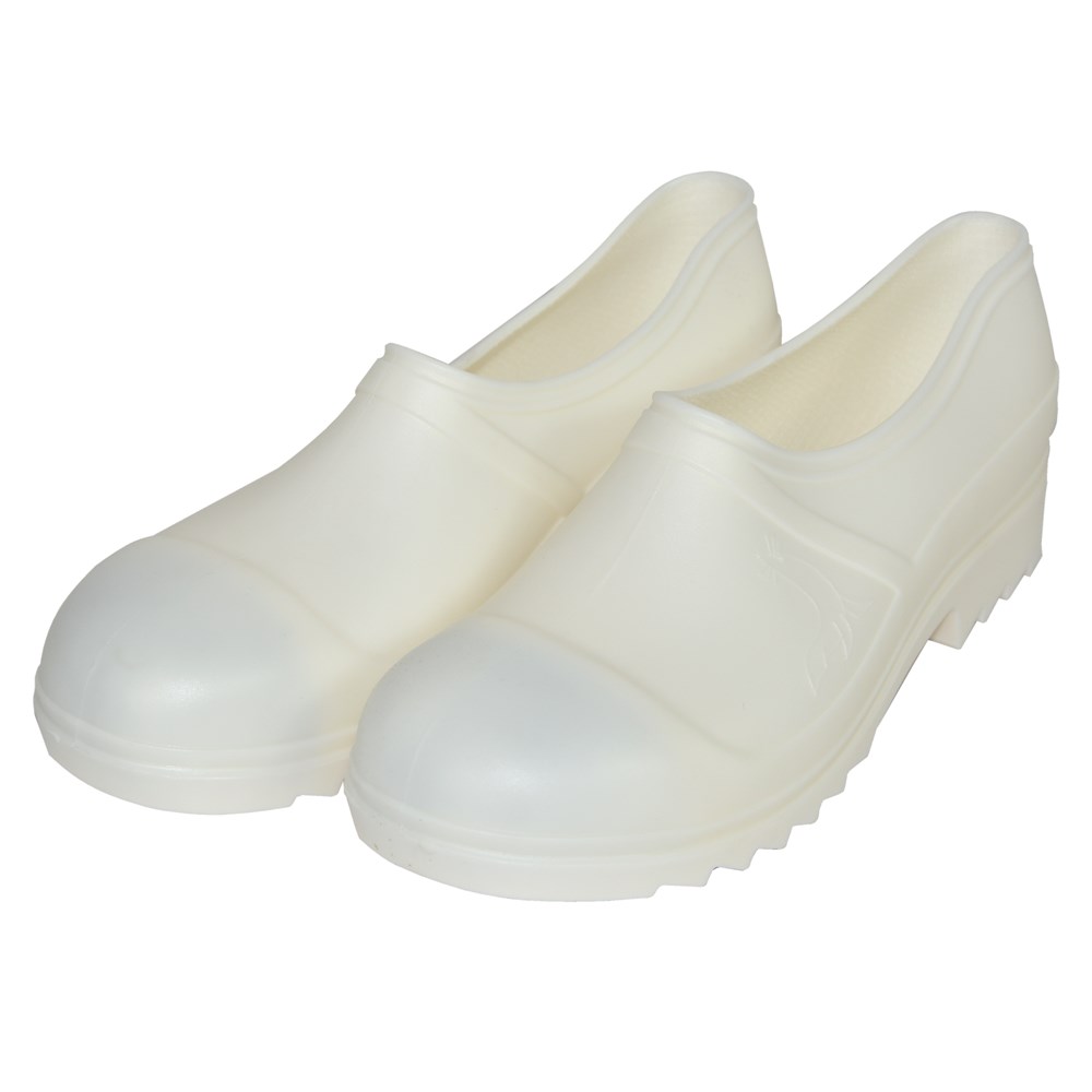 Shoes plastic with iron atop white color PVC material No.38, produced by a very high quality material and virgin PVC. These boots can be used in places with oils, Fats or other solution is by protecting against potential damages slides or in your working environment.