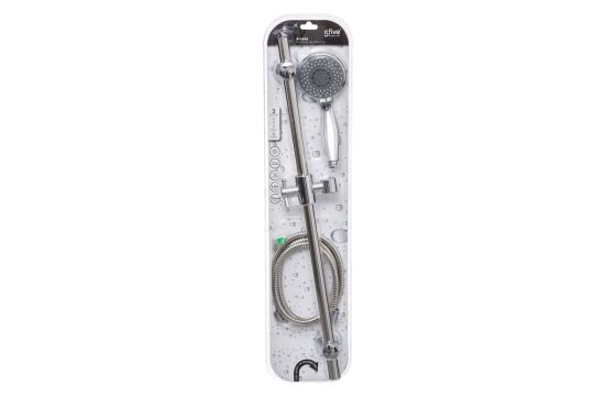 Shower head set+150mc pipe+70cm Abs steel column. This shower set with slide ofers the mobility of the shower head in different heights and positions. All components are packaged in a way that enables easy assambly. Liven up your toilet with a quality and stylish product.