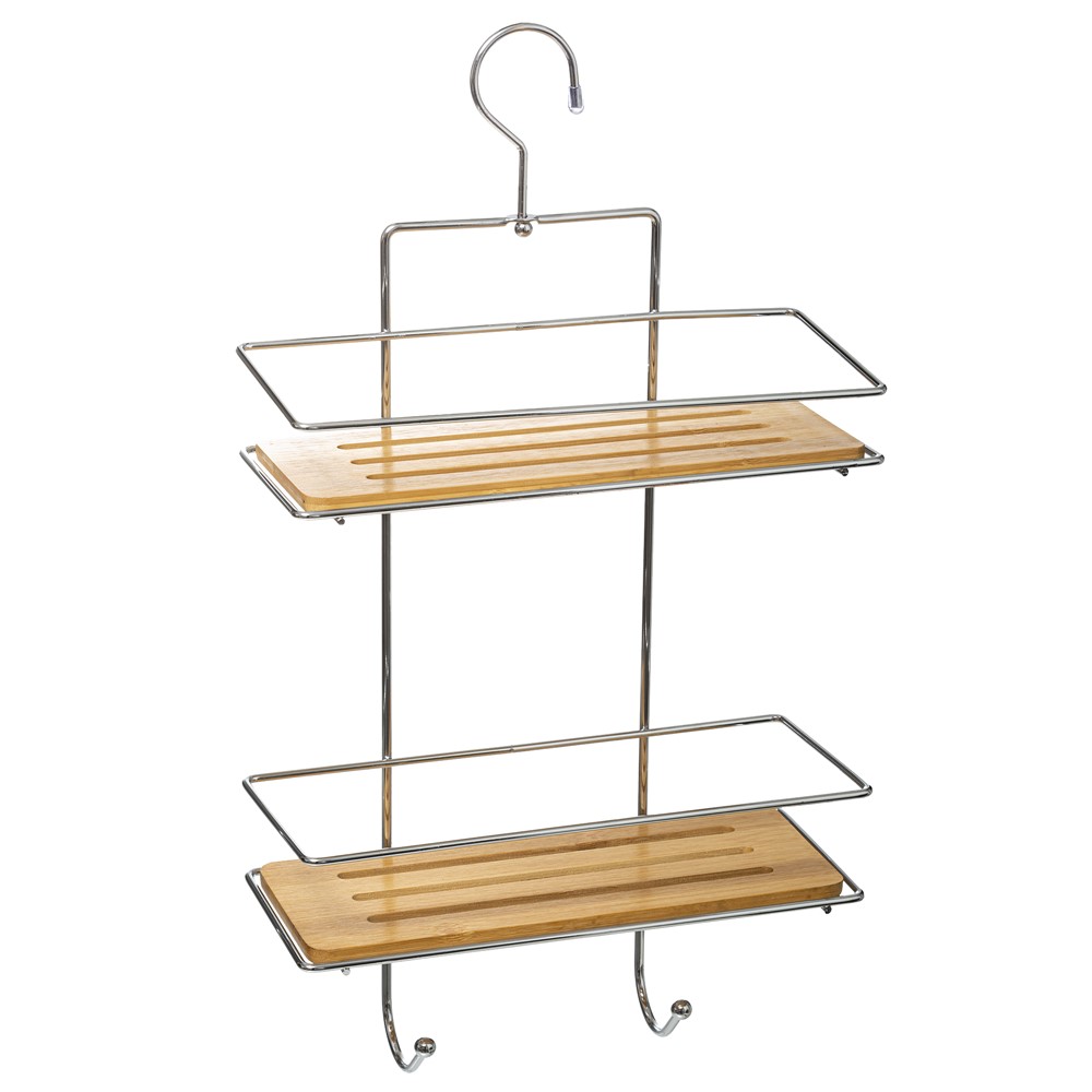 Shower holder, with 2 levels, metal/bamboo, 25.5x10.7x45.5 cm